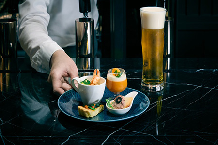ホテル創成札幌 Mギャラリーコレクションのバーラウンジは、銅製のビール釜をモチーフにした暖炉が目を引く特別な空間です。この地で生まれた札幌ビールはもちろん、ホテル向かいにある開拓使麦酒や北海道ワインなど、地元の風味をお楽しみいただけます。さらに、熟練のミキソロジストによる多彩なカクテルもご用意しております。