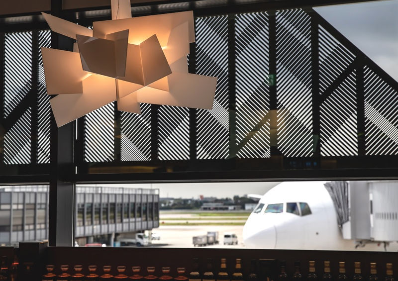 伊丹空港保安検査場を抜けたJAL側(北ターミナル)に位置するグラン・ブルーは、店内から飛行機や滑走路が見える絶好のロケーション。ホテルラウンジ&バーのような上質なひとときを空港でもお愉しみください。