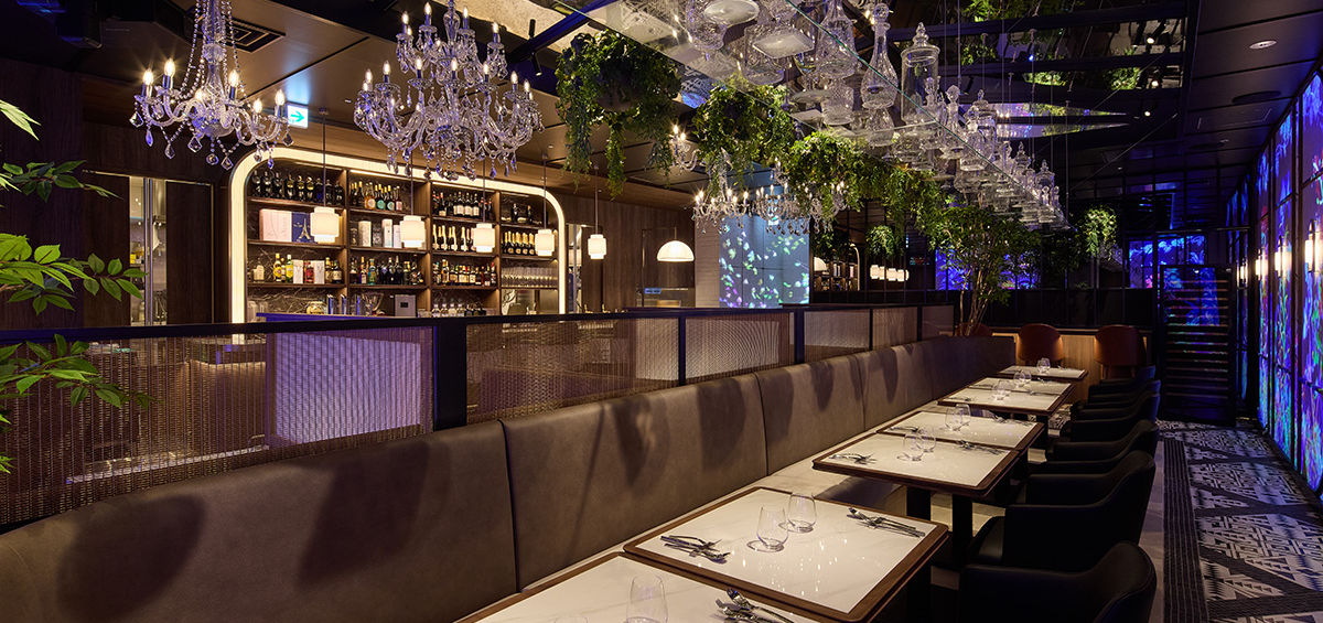 都会の喧騒を忘れ、ヨーロッパの高級リゾートのような緑豊かな空間で、最先端のプロジェクションマッピングが創出する幻想的な世界へ。五感を刺激する独創的な空間と革新的な料理が、あなたを忘れられないひとときへ誘います。